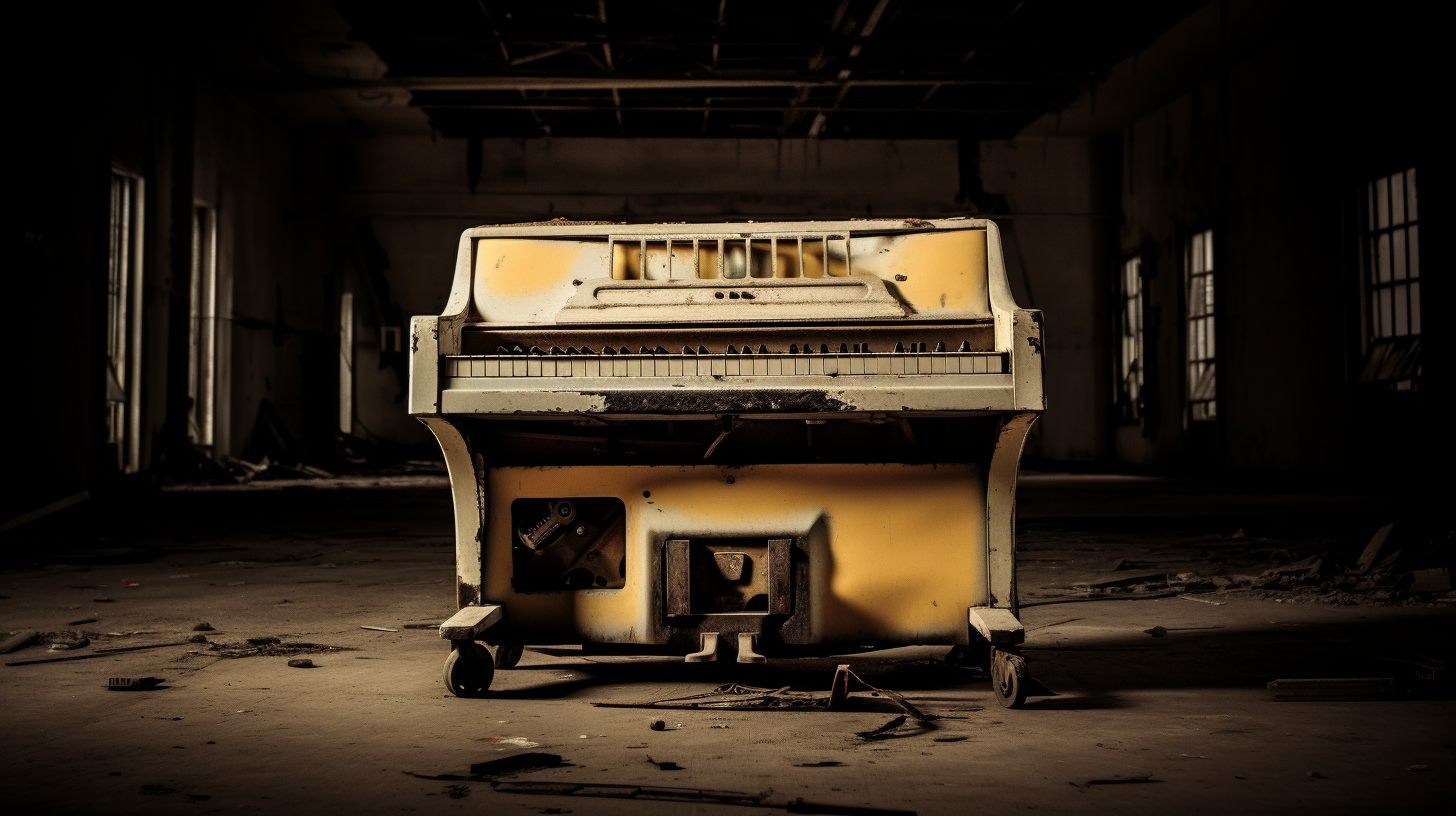 Old Worn Out Metal Upright Piano in an Abandoned Warehouse - FREE Download